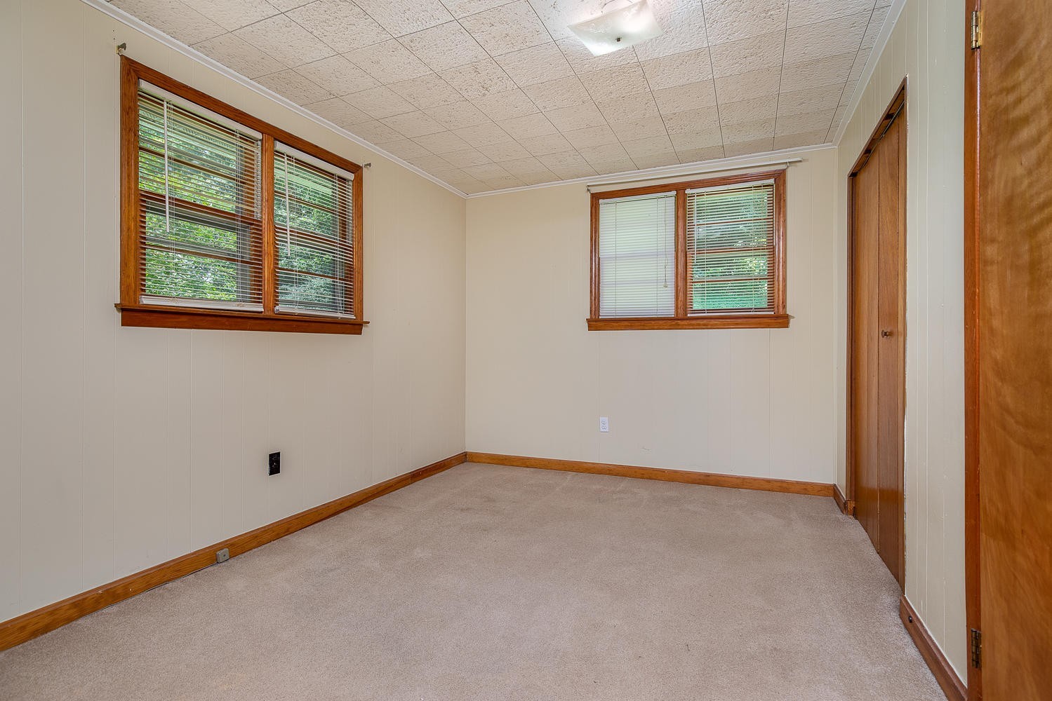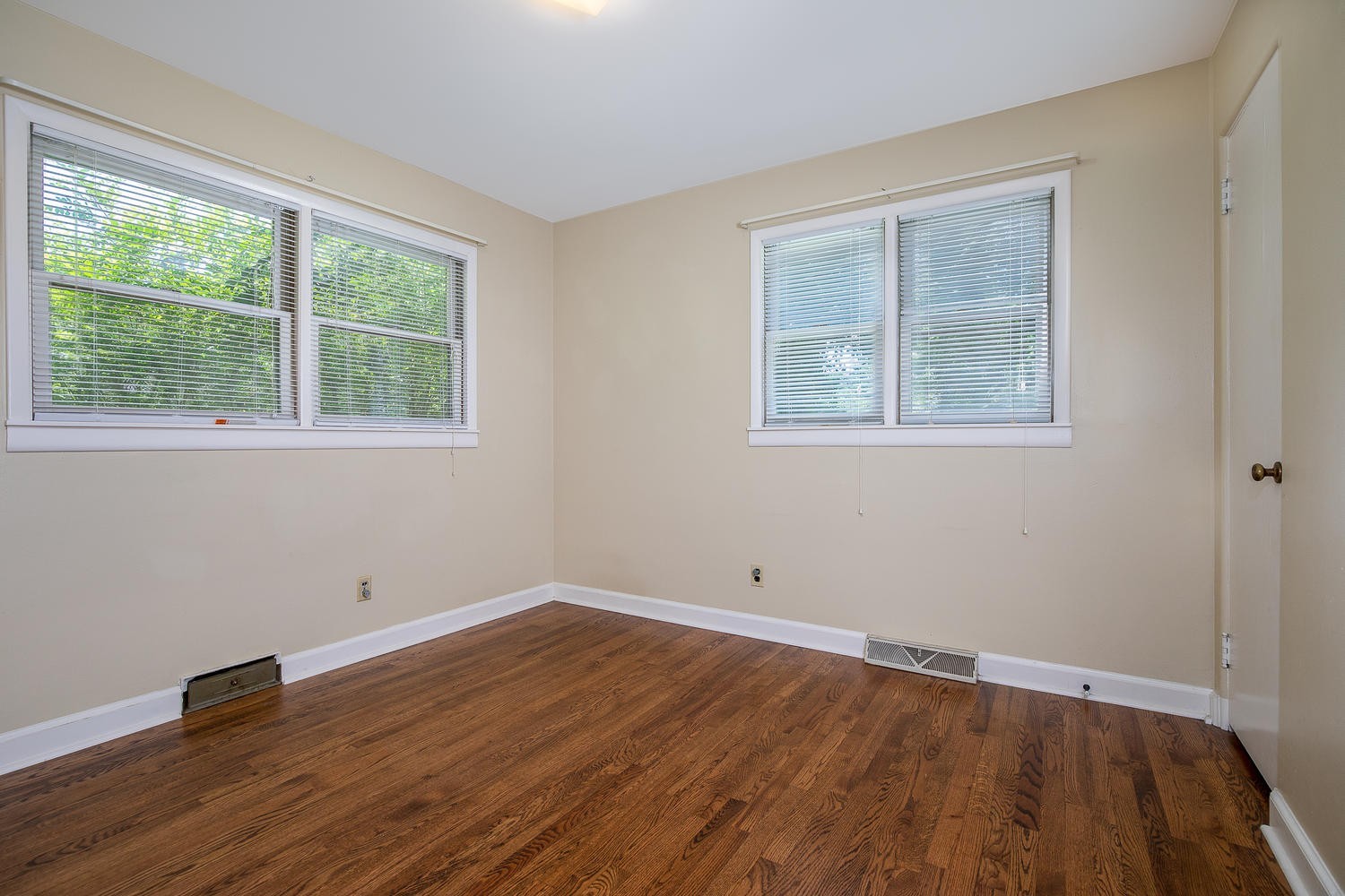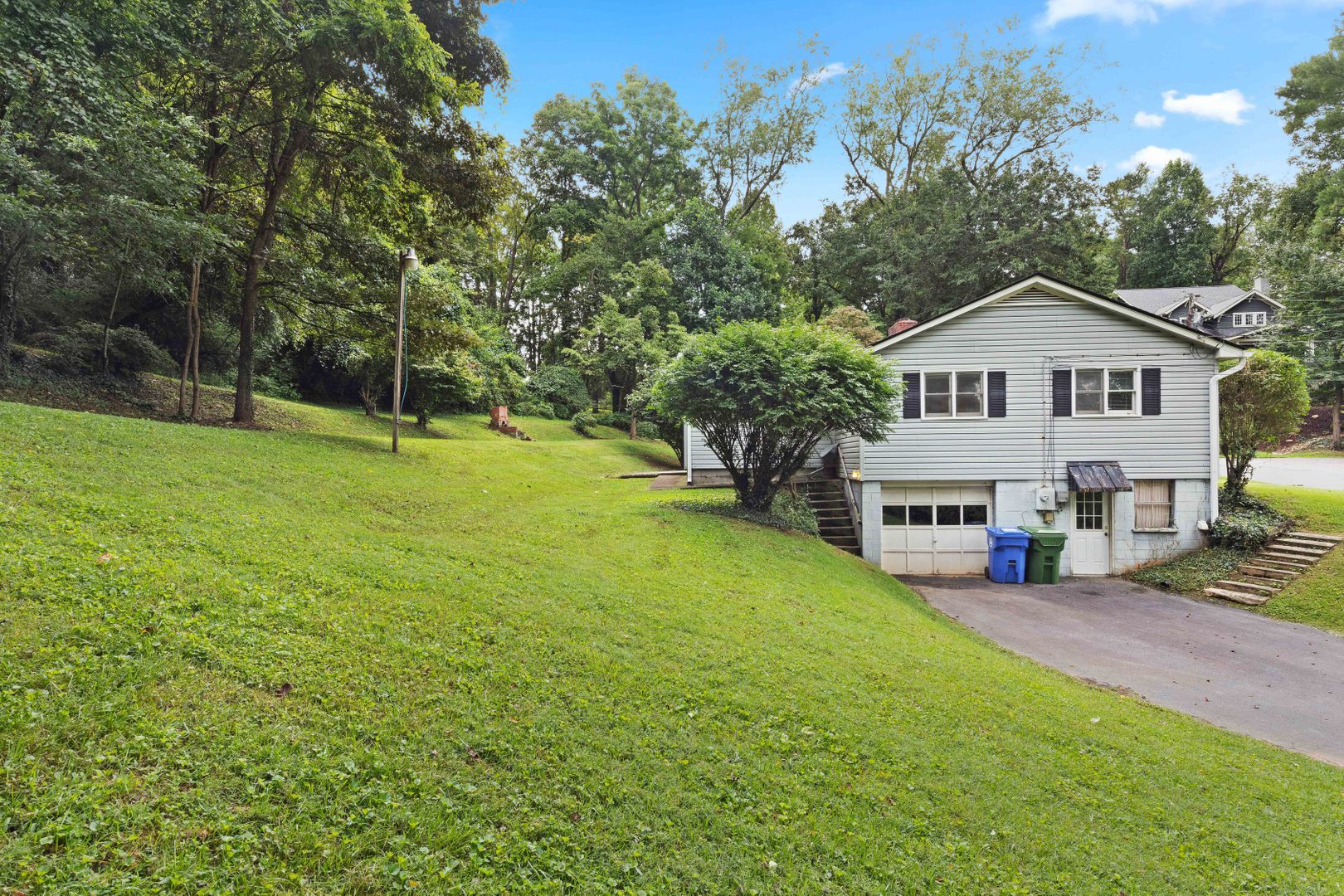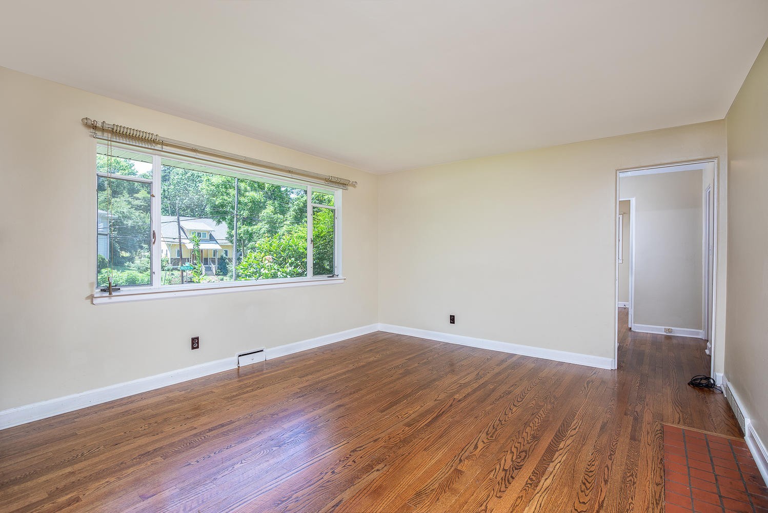 Great home in a sweet West Asheville neighborhood with a large den, office space, and a big grassy yard. The living room includes built-in shelving and a picture window. Bi-fold doors open into the carpeted den with a gas fireplace. Kitchen appliances include the electric range, refrigerator, and a brand new dishwasher (not yet pictured.) Three bedrooms and the bathroom are off the central hall, and the office is off of one of the bedrooms. The bathroom has been updated with a new vanity, the bathtub has been refinished, and the bathroom tile has been re-glazed to a bright, clean white. New flooring in the kitchen and bathroom. Basement-level one-car garage and laundry area with washer/dryer hook-ups. Interior stairs for basement access are off the kitchen. Tenants responsible for all utilities (electricity, water/sewer, natural gas) and lawn mowing. One dog under 30 lb. is negotiable. Central heat (gas) and air conditioning. No smoking. No cosigners.
