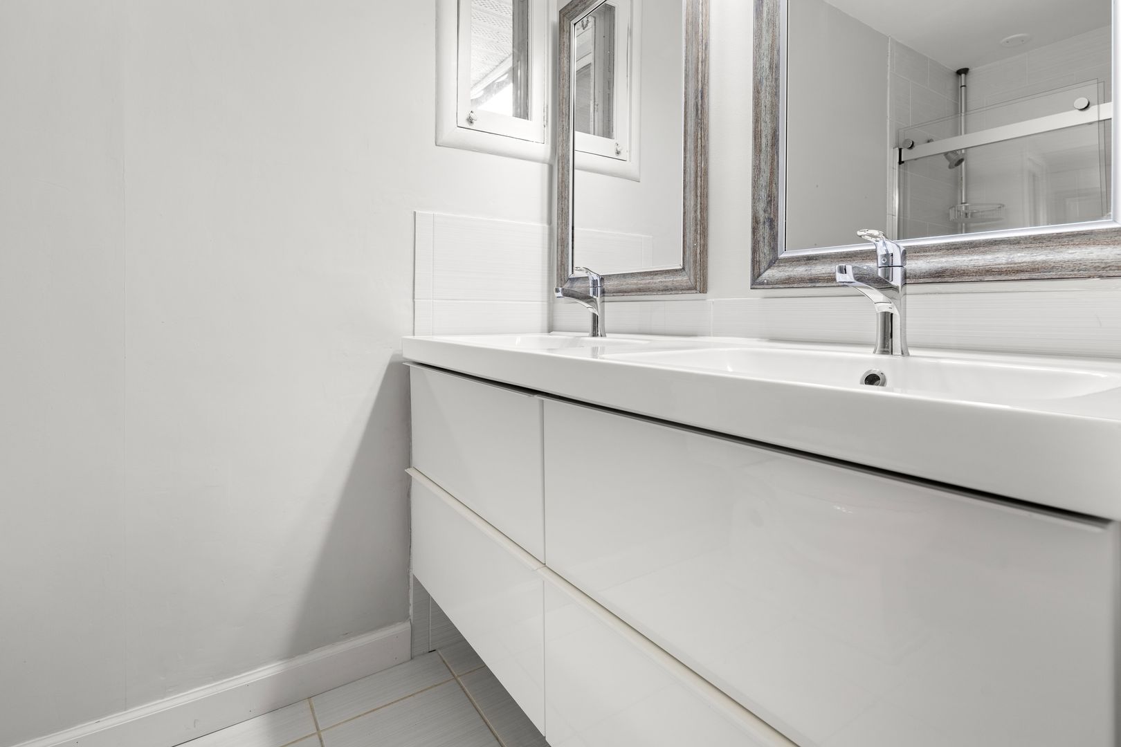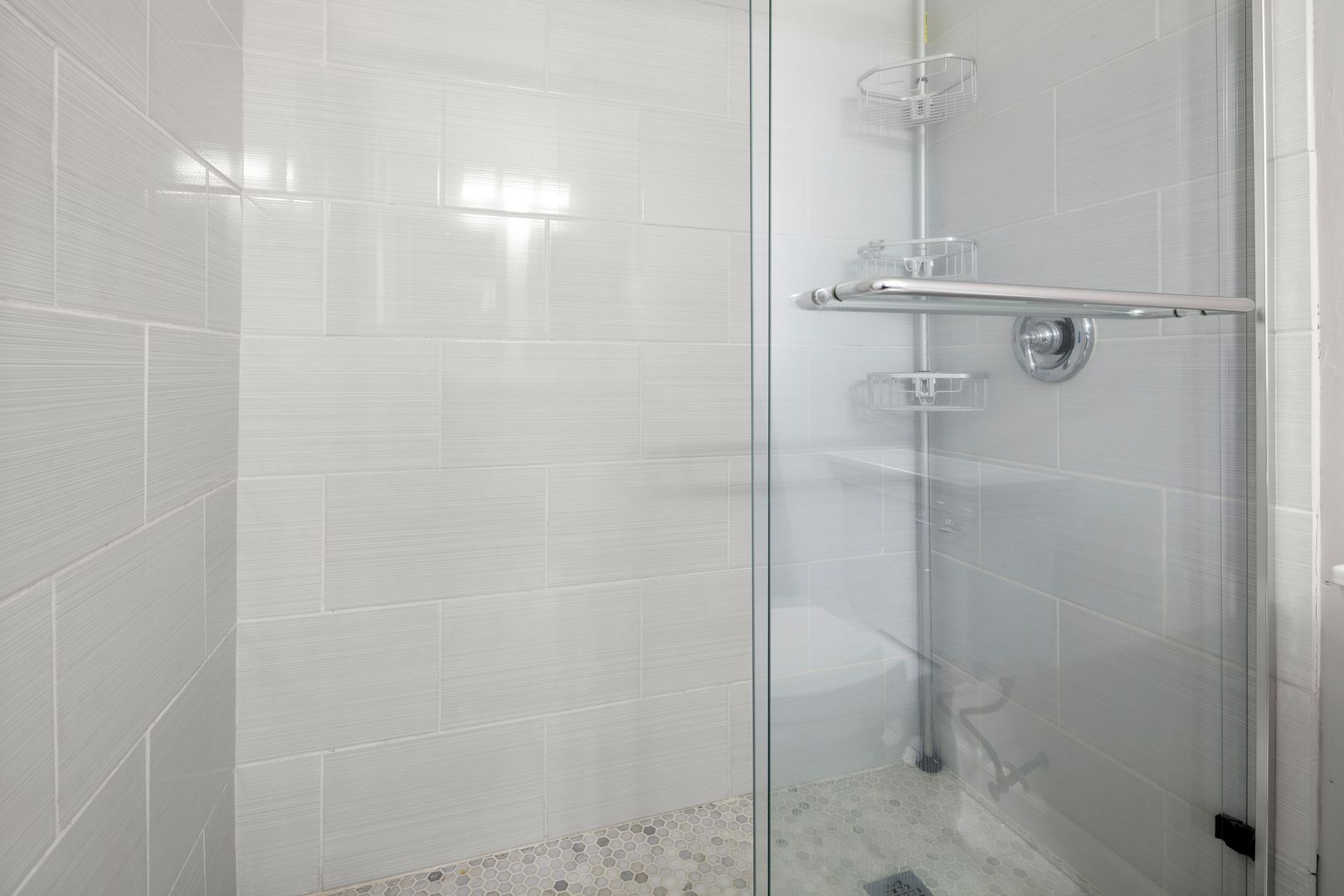 Three bedrooms and both bathrooms are off of the home’s tiled main entry foyer and hallway. The primary bedroom includes good closet space and an updated en suite bathroom with a double sink vanity and a walk-in shower with beautiful tile. The hall bathroom is also updated with attractive tile and fixtures.