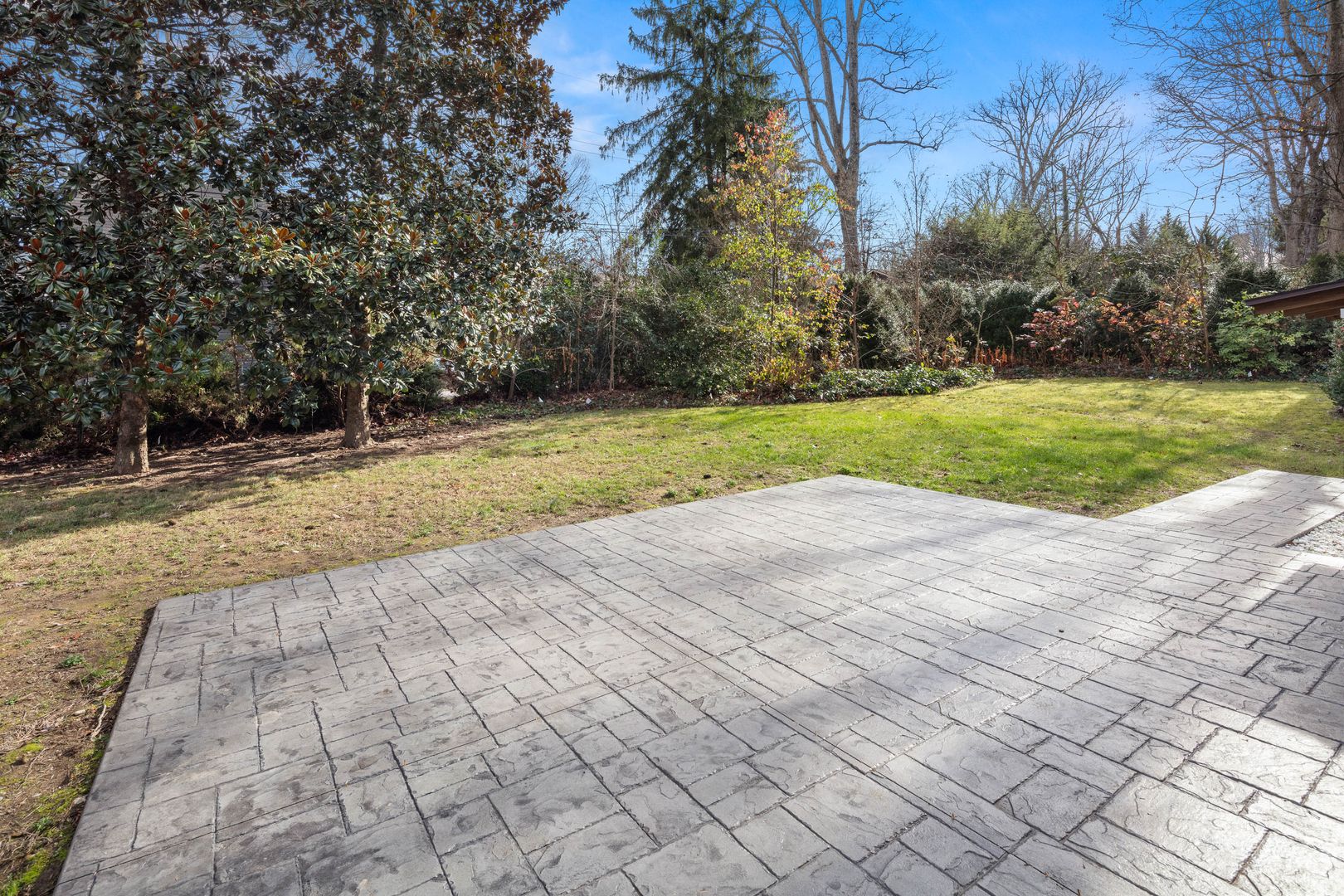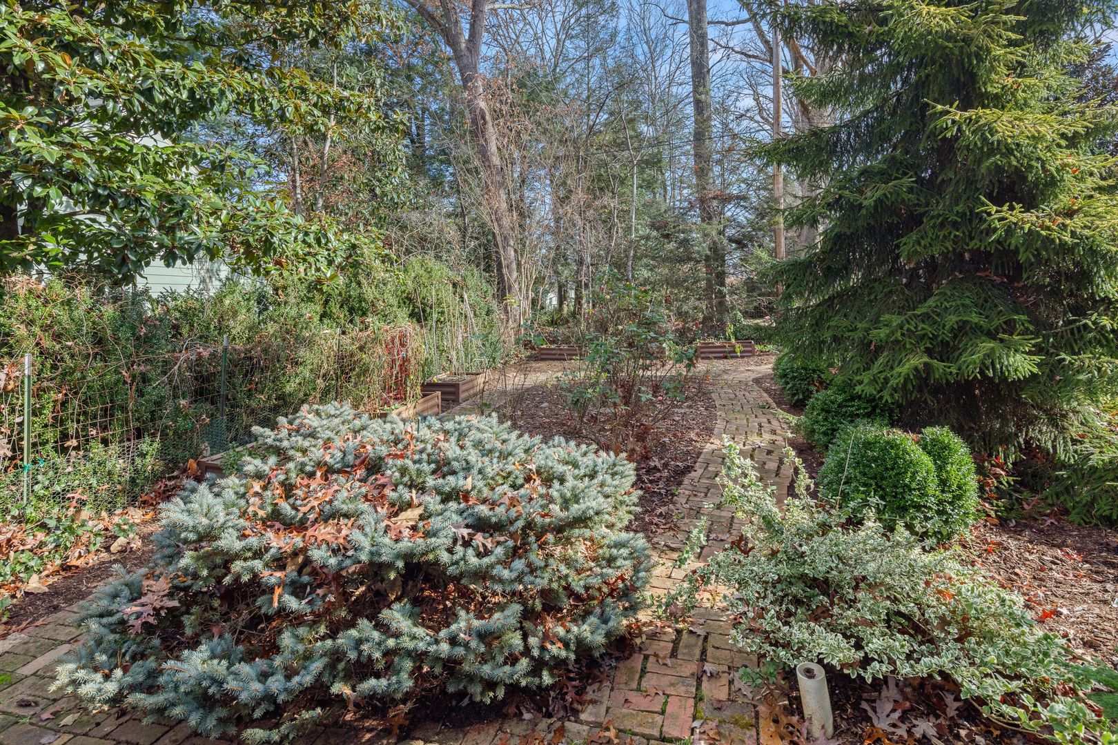The lot is nearly a half acre, with wonderful, mature landscaping creating an attractive approach from the street and enveloping the private backyard. The level backyard includes the large patio, open space, and a garden area with brick pathways, a fire pit, and raised beds.