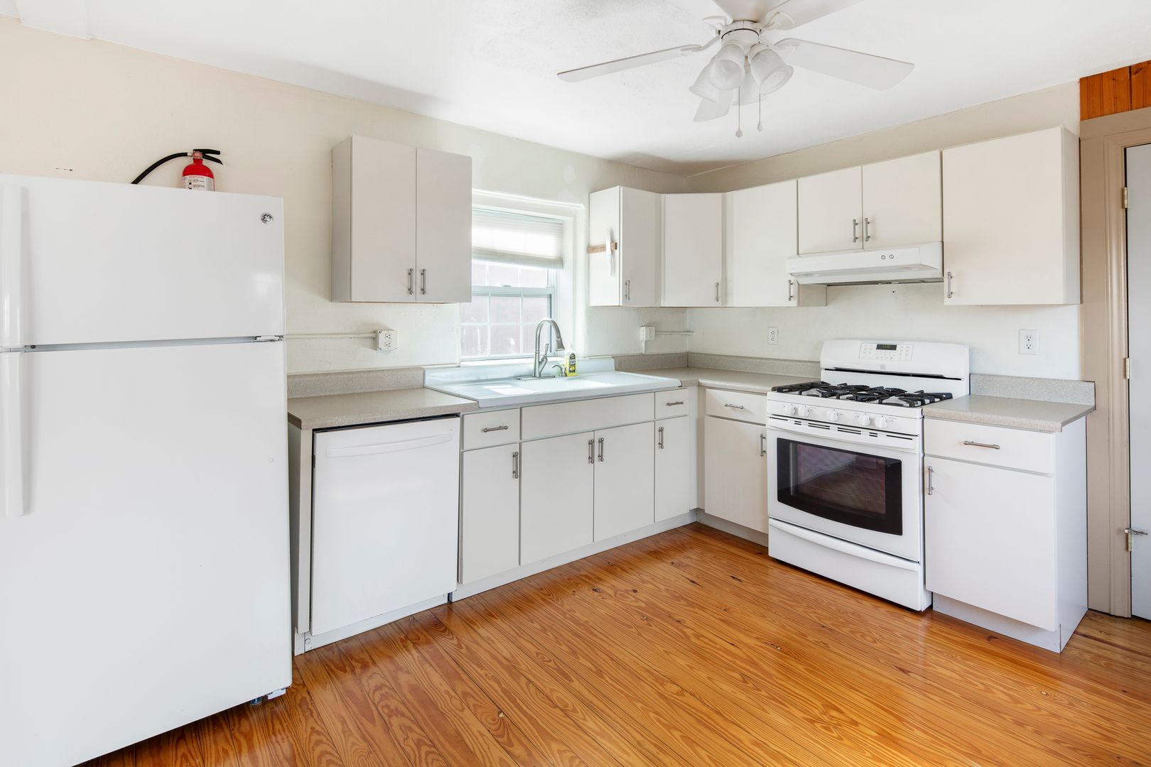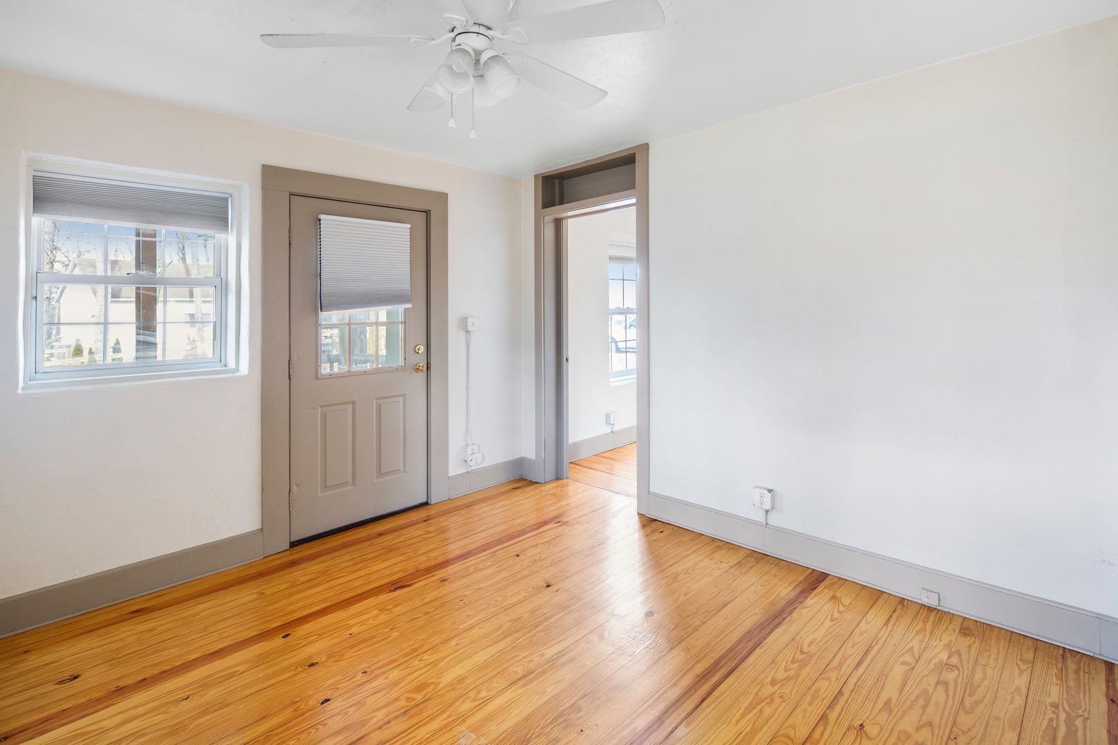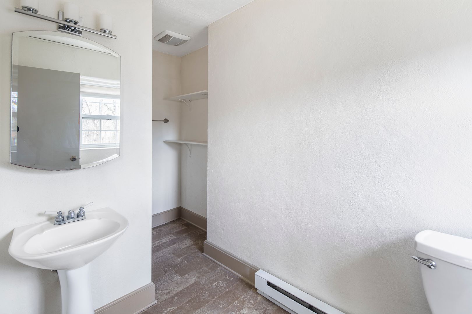 Blocks from dining and shopping in West Asheville's vibrant Haywood Rd business district, this apartment has hardwood floors throughout and two bedrooms, each with an en suite bathroom! The open eat-in kitchen and living room have plenty of windows for great natural light. Kitchen appliances include the refrigerator, gas range, and dishwasher. One bedroom includes a spacious walk-in closet and access to a great screened porch. This bedroom’s en suite bathroom includes a large shower. The second bedroom has good closet space, and its en suite bathroom includes a shower/ bathtub and the stacked washer and dryer. Heat supplied by the Rinnai gas wall heater; no central a/c. Ceiling fans throughout. Tenant responsible for all utilities, including natural gas, electricity, and water. Shared outdoor space and off-street parking. Available with a one-year lease. No cosigners. No smoking. No pets.