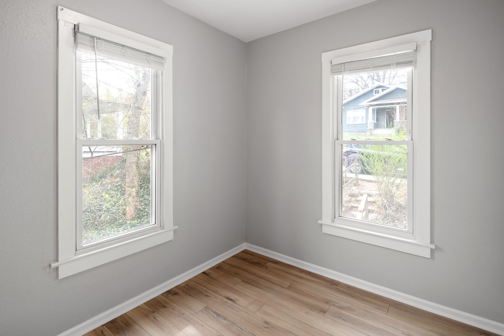 Limited on-street parking is available on Washington Rd. or walk up through the grassy back yard from dedicated off-street parking located off of Lee St N., with one parking spot per apartment. Central gas heat; no air conditioning. Tenant responsible for all utilities, including water/sewer, electric, and natural gas. No pets. No smoking. No cosigners.