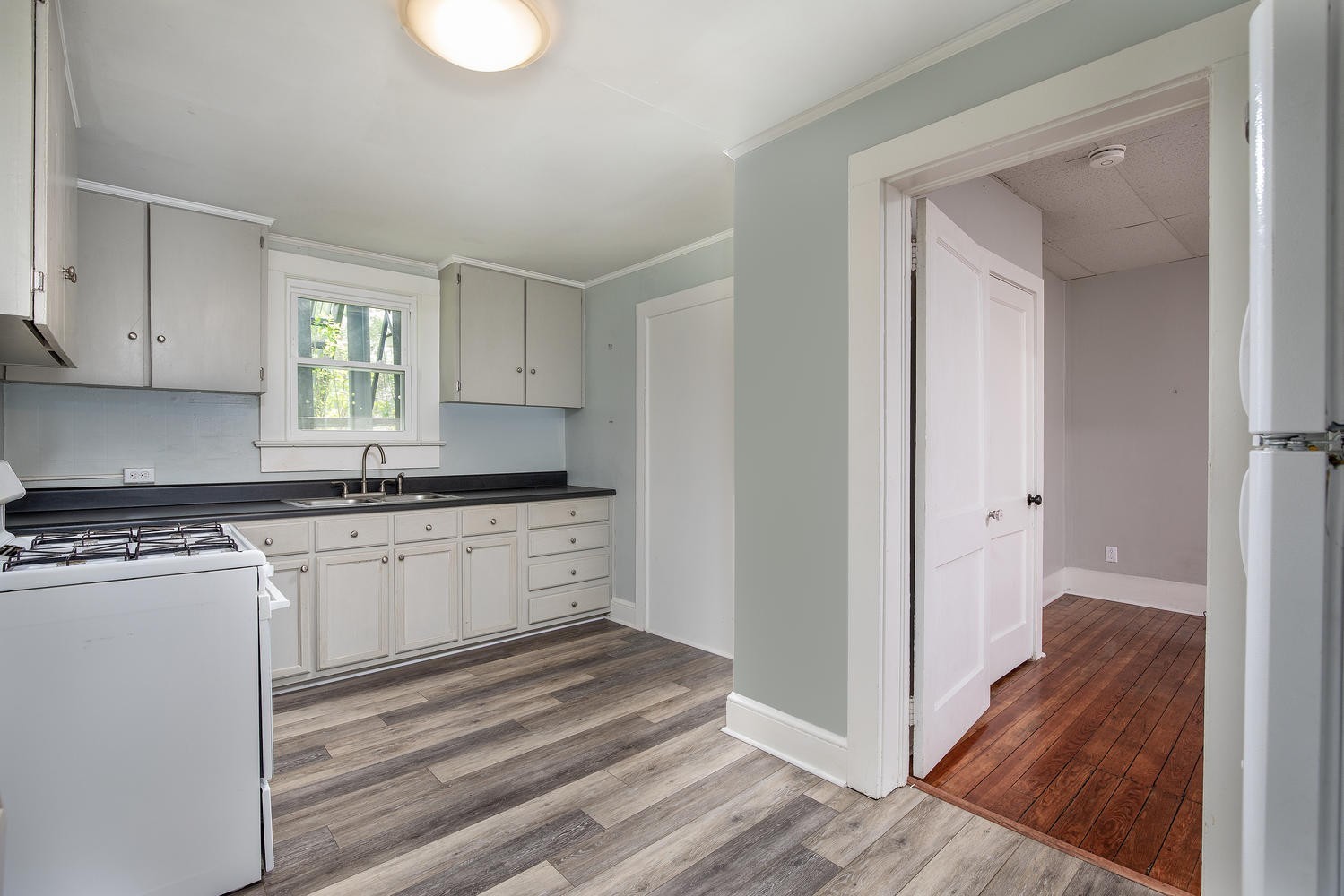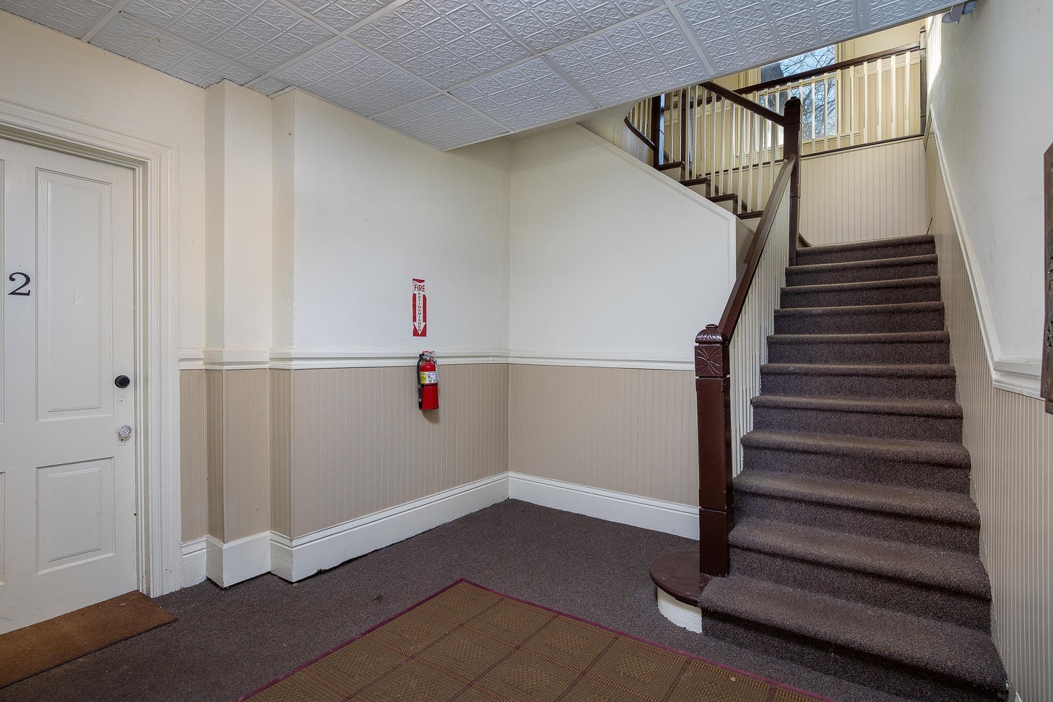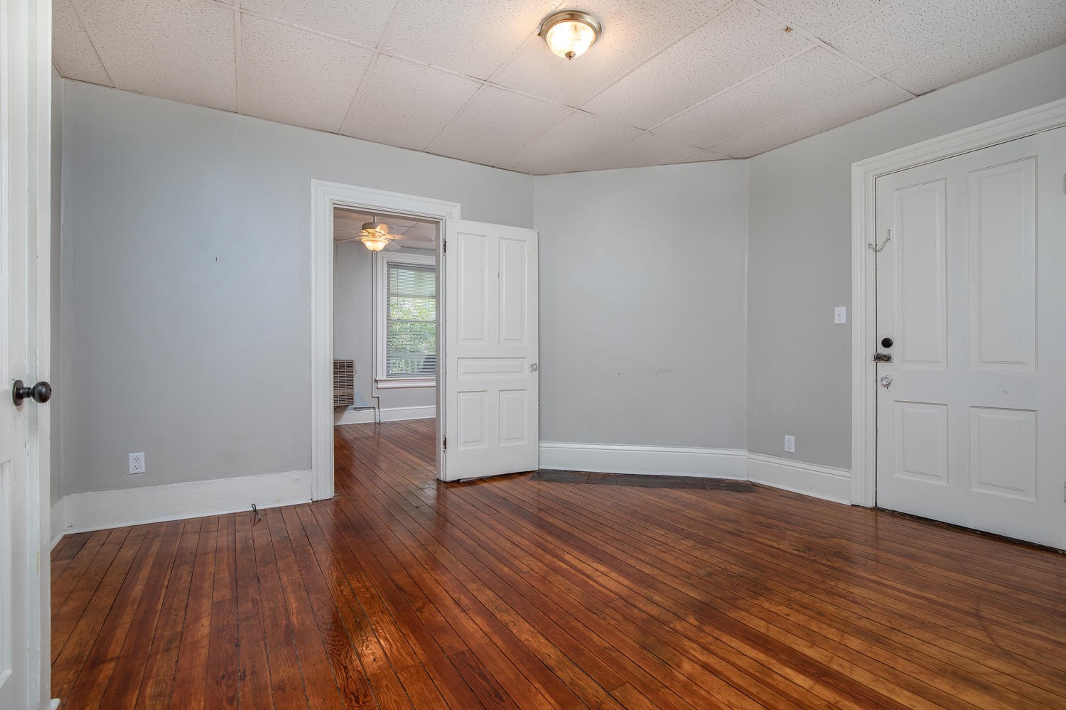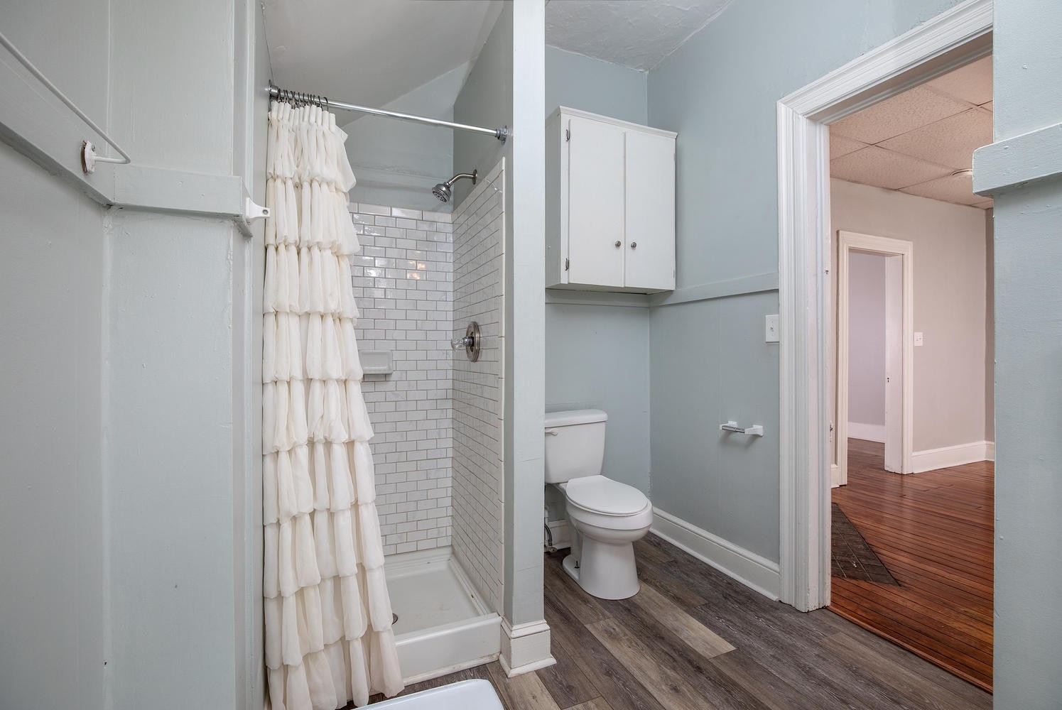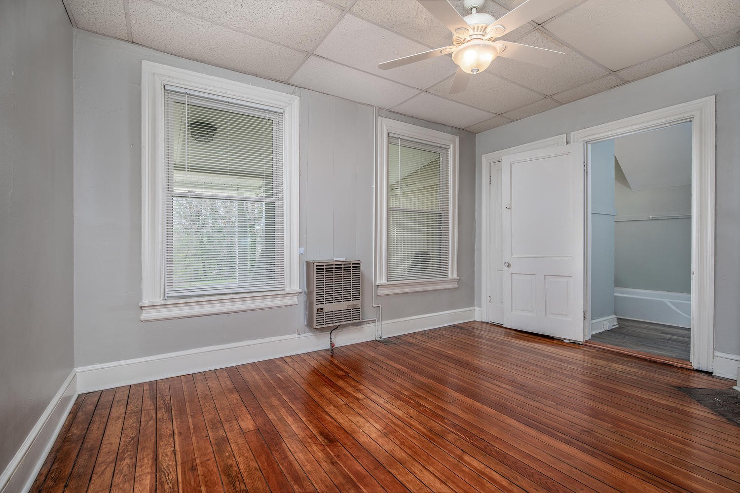 This first floor apartment has hardwood floors and a nice-sized living room and bedroom. Enter via a shared lobby or the exterior door in the kitchen. Kitchen appliances include the gas range and refrigerator. The bathroom is charming with a quirky layout incorporating the tiled shower stall and separate bathtub.